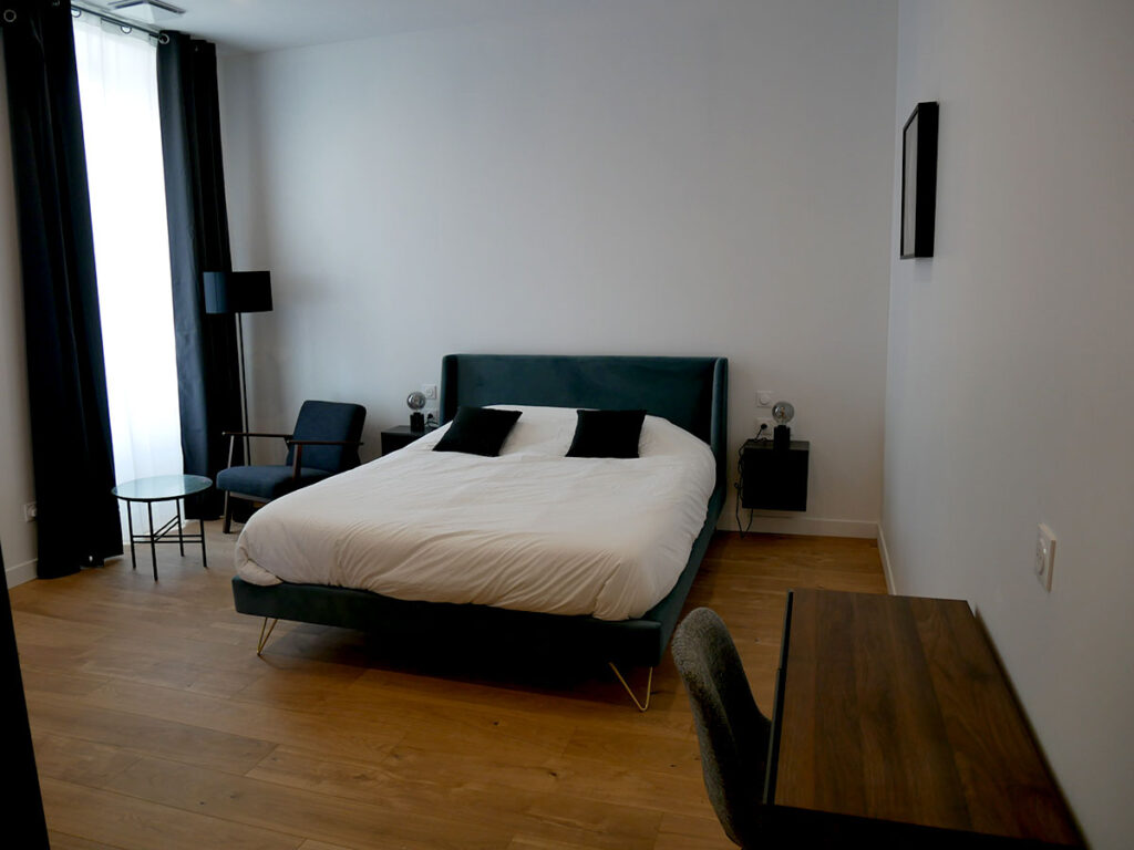 La chambre Nolay est entièrement équipée et climatisée, pour un confort exceptionnel par tous les temps. Décorée avec soin avec des équipements modernes, elle bénéficie d’une grande hauteur sous plafond.